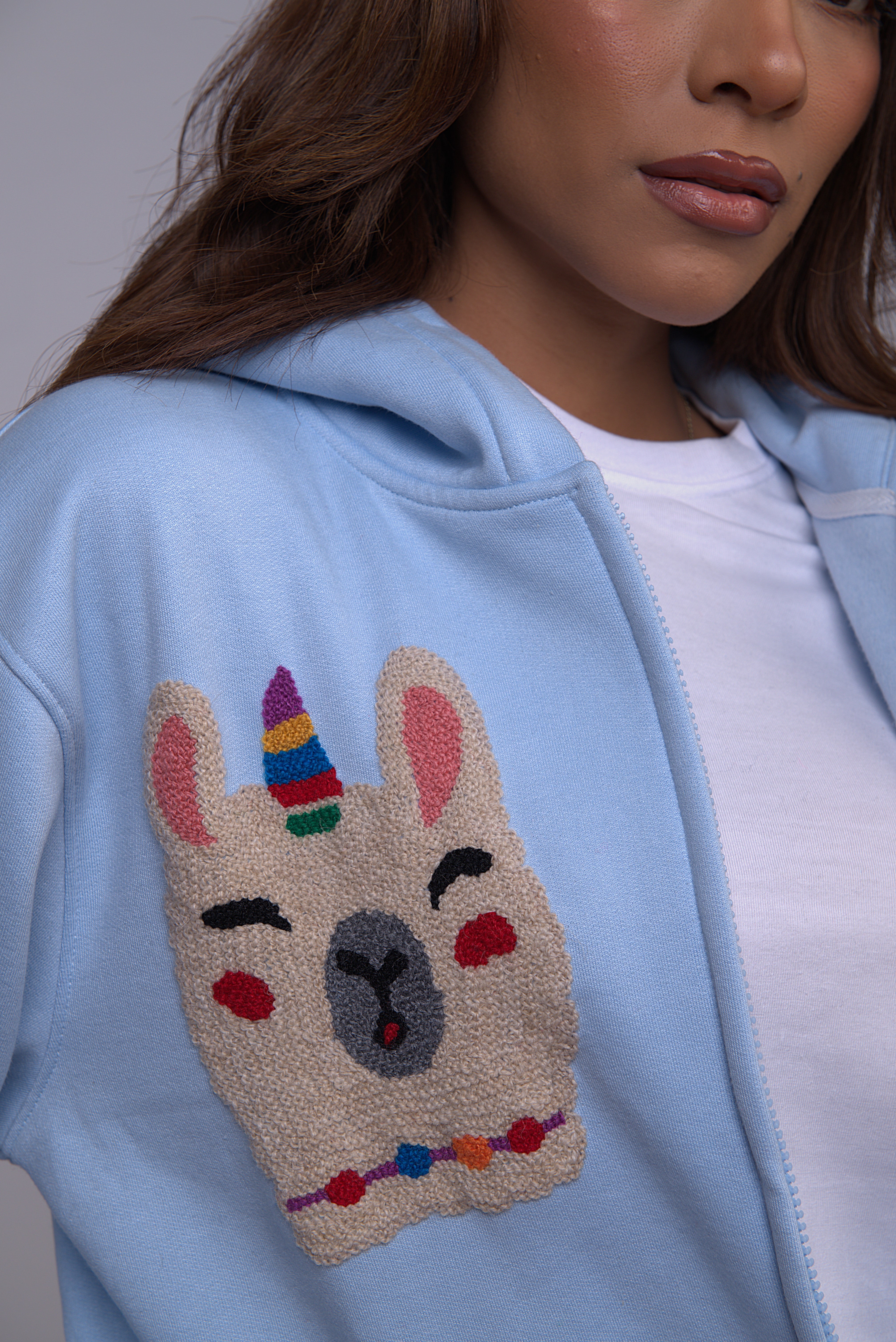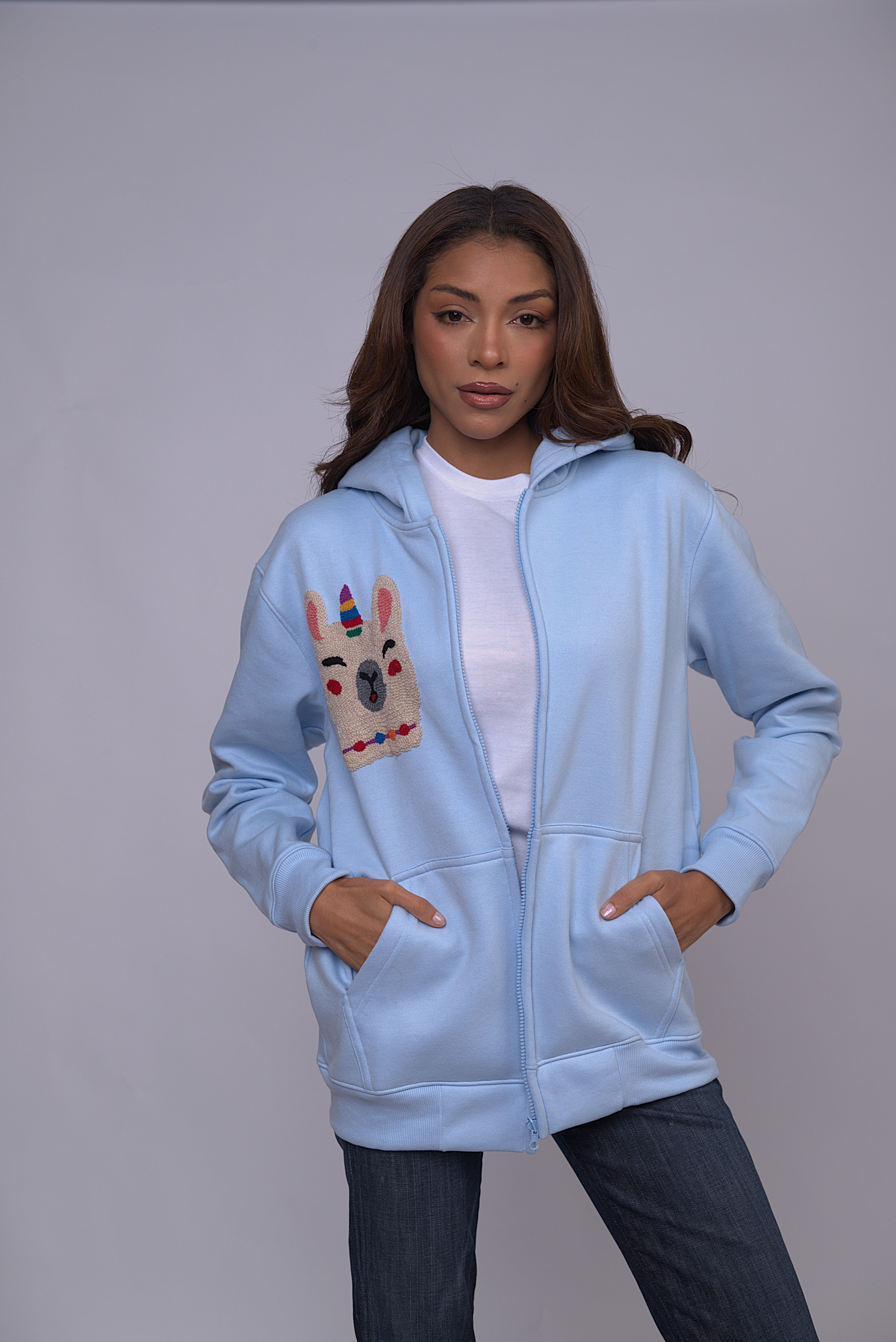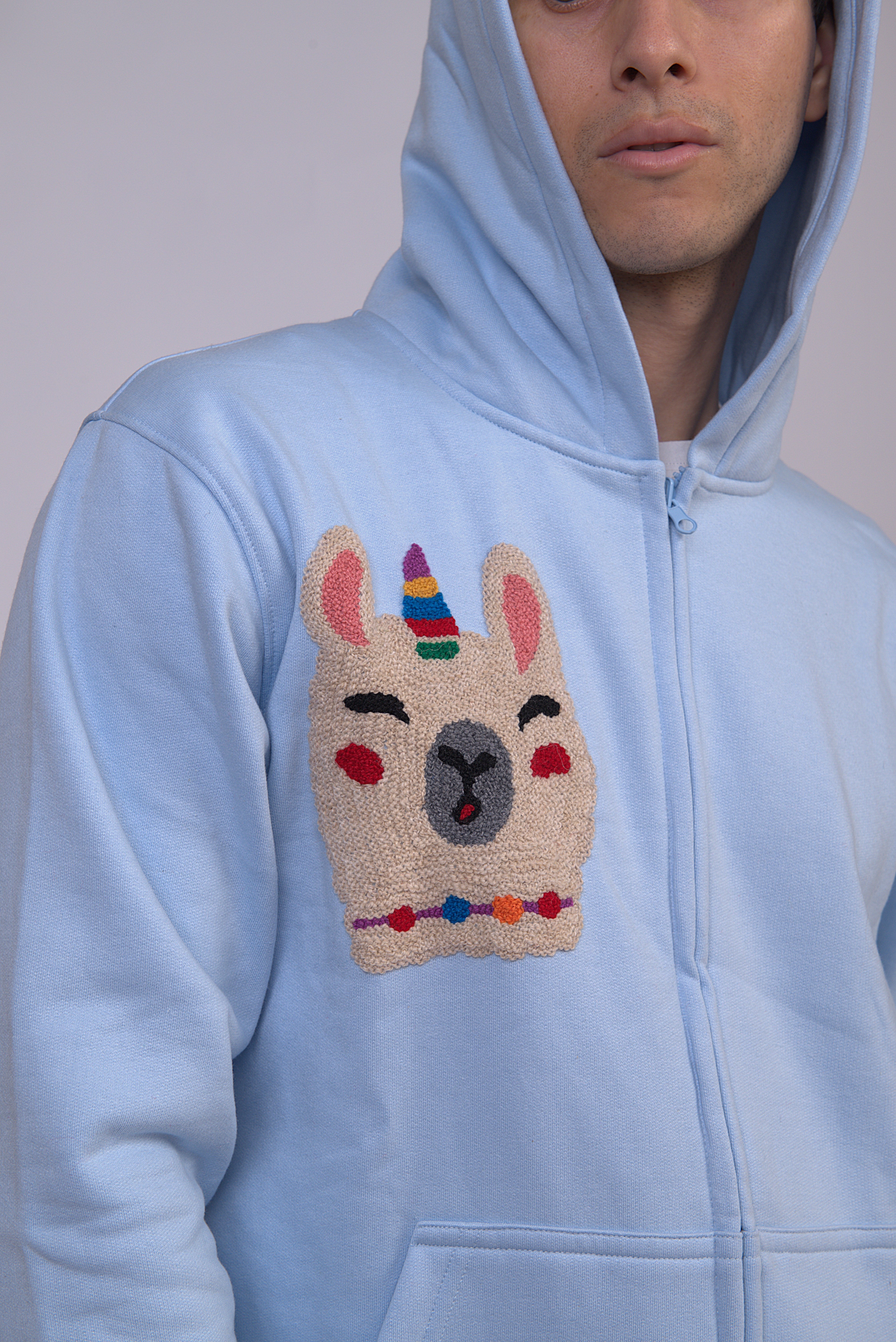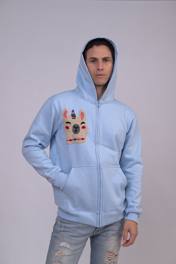Full-Zip Hood perfects everyday comfort and durability. Crafted from a 50/50 blend of cotton and polyester, this hoodie features a YKK metal zipper, pill-resistant air jet yarn, and a cozy unlined hood. Have unique embroidery make by hand in Ayacucho Peru.